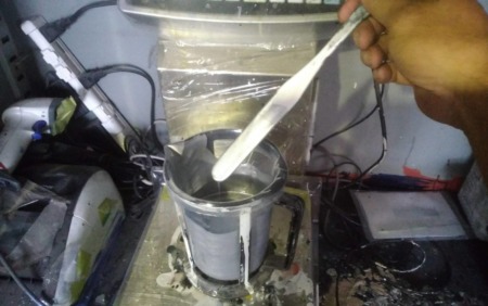 ▼データをもとに、塗料を調合していきます。