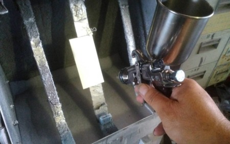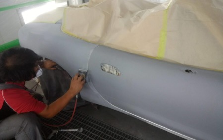 ▼次に下地処理剤のサフェーサーを吹き付けます。