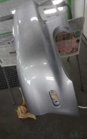 ▼同様にリアバンパーも補修して下地処理をおこないました。