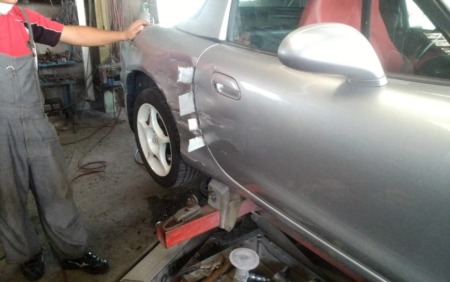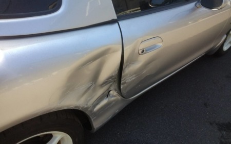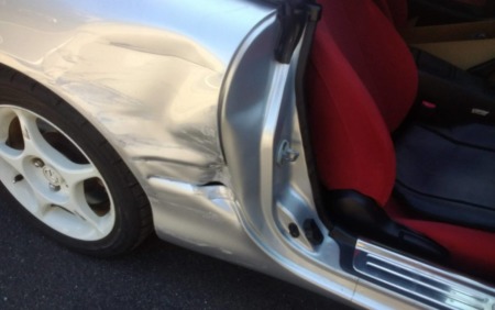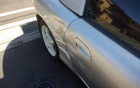 以前ネットからオールペン施工させていただいた依頼者様で、今度は不運にも側面から対向車が飛び出て来てという事故に遭われたそうです。