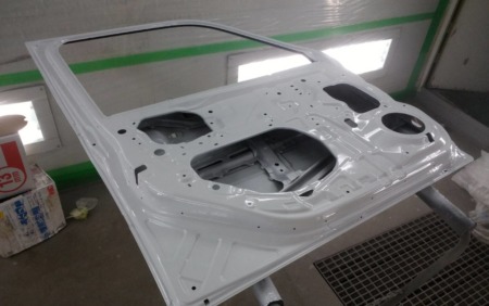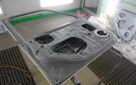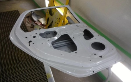 前後のドアは新品交換とはいっても塗装されていませんので、塗装作業が必要になります。
