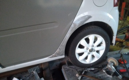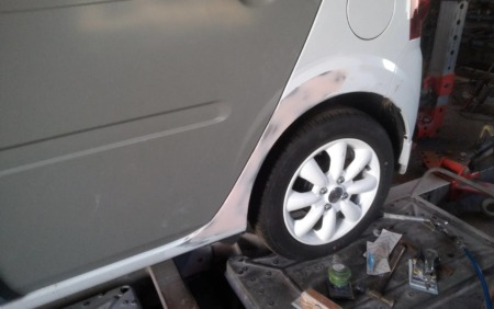 クオーターパネルといって後ろのドアのパネルは交換は車のためにもあまりよくないので鈑金塗装でしました。