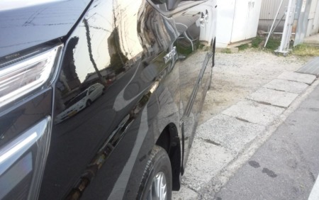 これから塗装を行って行きますが、その前に塗装面を塗料の食いつきを良くするための足付けをして、塗装面の脂分・ワックス分を専用の溶剤で落とす脱脂の作業も併せておこないます。