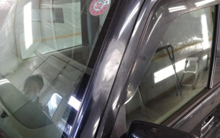 塗装面全体の汚れや脂分・ワックス分を専用の溶剤で落とす脱脂を行い、塗装の食いつきを良くするための足付けをします。足付けをしっかりしないと時間が経つと塗装がはがれやすくなります。