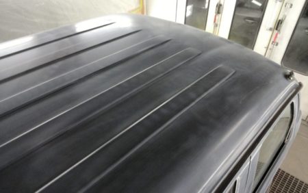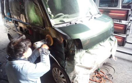 ▼ これから全塗装の工程に入っていきますが、まずはボディの状態を診断してボディについたえくぼやくぼみ、擦り傷の有無を確認して補修を行って行きます。