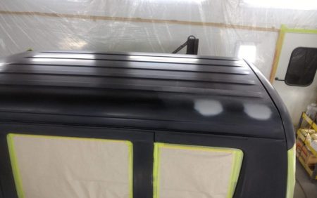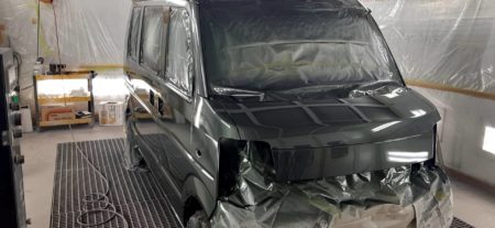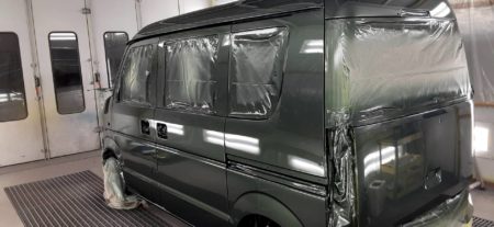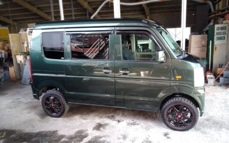 既存のお客様がソロキャン初めてみたいので箱バンが欲しいと言うことで、オークションで仕入れて尚且つリフトアップと現行のエブリィワゴンの純正色に色替えしたいとの依頼でした.