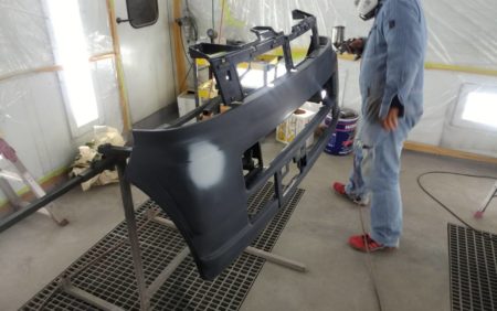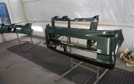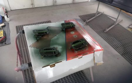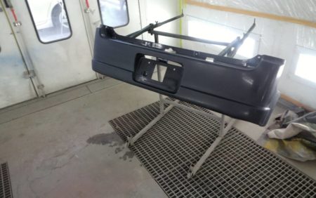 フロントバンパー、リアバンパーもそれぞれに単体で塗装を行って行きます。