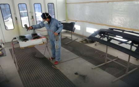 ▼ 赤外線ヒーターで強制乾燥を行い塗料の乾燥を早めます。