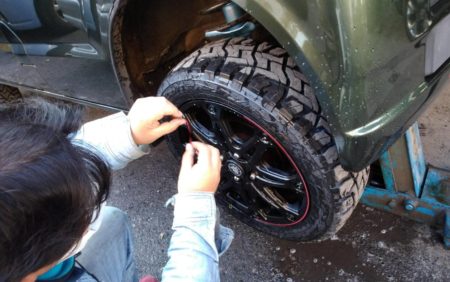 ▼ ホイールもブラックに塗装を施しホイルの縁に赤のストラップを入れてカッコよく仕上げました。