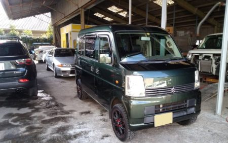 福山市よりスズキ・エブリイワゴンの全塗装依頼になります。