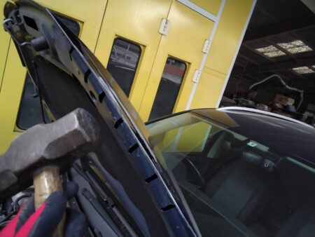 ▼ フェンダーの凹みをプレンディングハンマーで凹み箇所を慎重に叩いて凹みを直していきます。