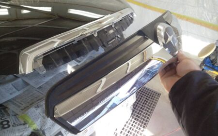 ▼ ライト照射による色のトマリ・色むらのチェック作業は色のトマリのチェックと言って色がきちんと塗られているか、下地のサフェーサが出てないかを光を当ててチェックする重要な作業になります。